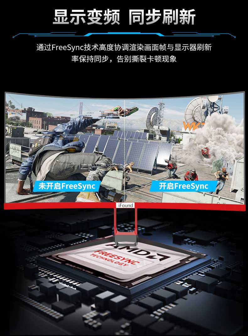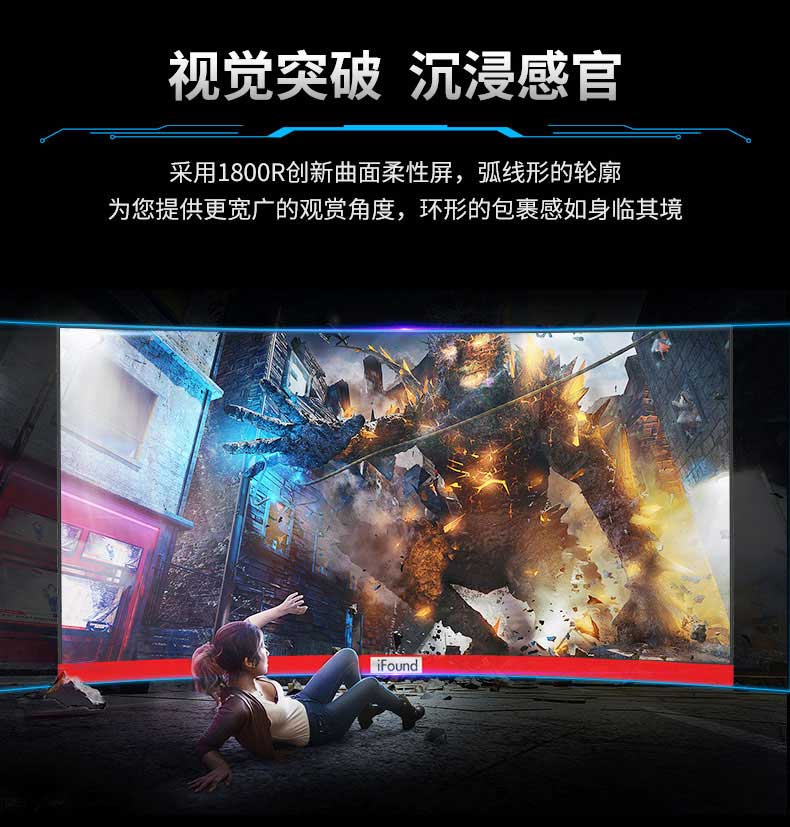 方正iFound FD2736GM+ 27英寸144Hz 电竞曲面微边框游戏滤蓝光不闪屏电脑显示器 FD2736GM+/144Hz/1080P/多接口 一件